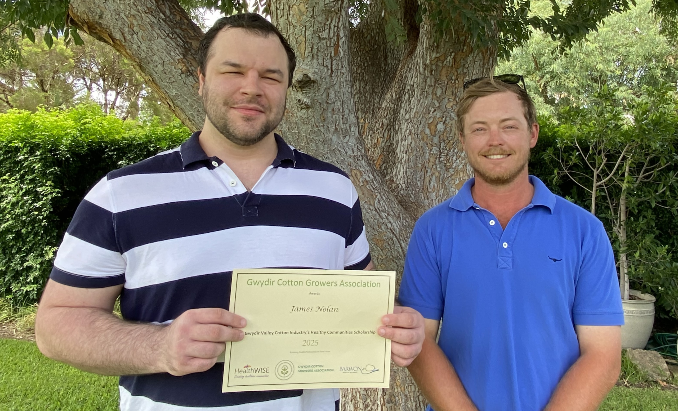 This year’s Healthy Communities scholarship winner, James Nolan, with Gwydir CGA committee member, Liam Winter.