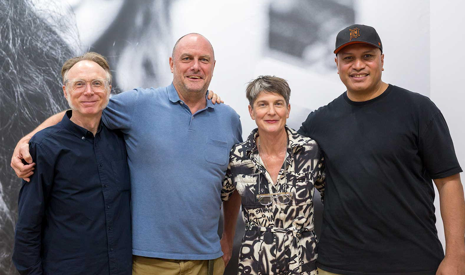 (from left) Photographer Joshua Morris, creator of Garage Barbershop, Christian Tancred, BAMM director Rosie Dennis and Charles Lomu, lead artist and mentor behind Garage Barbershop at the BAMM launch.