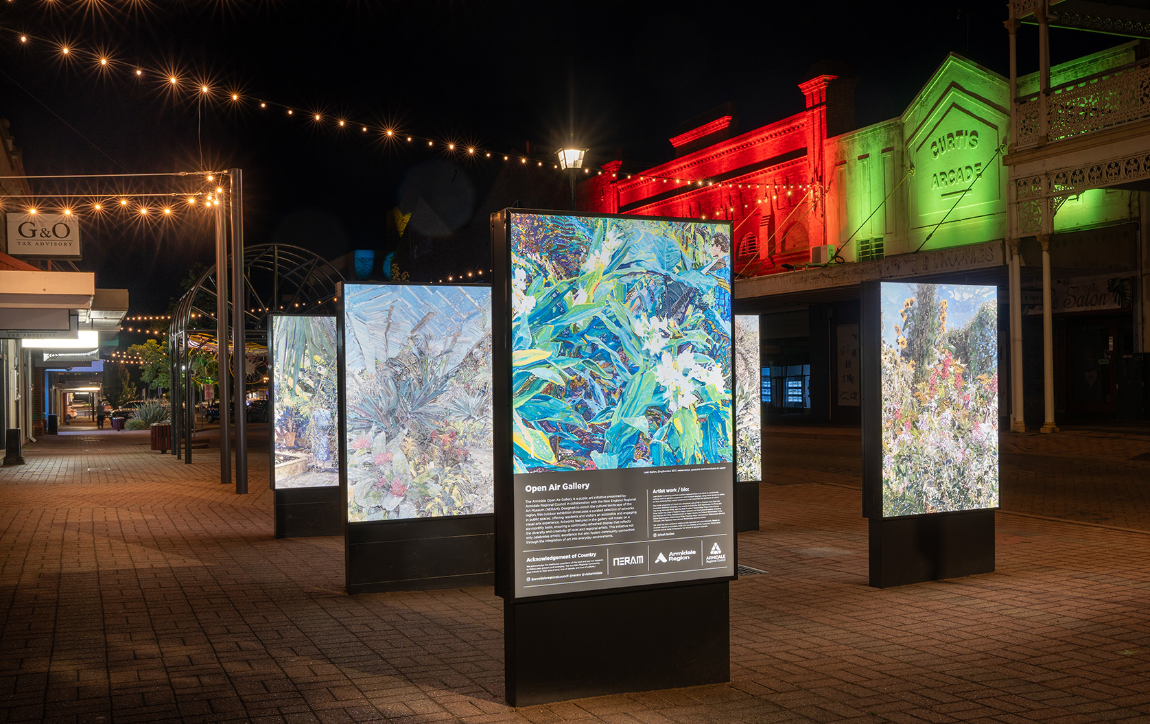 “The Open Air Gallery offers a unique opportunity for artists to share their vision with the wider community and for everyone to engage with art beyond the walls of a museum,” Ms Parsons said. “The illuminated displays make art accessible, inspiring, and a defining feature of Armidale’s city centre.”