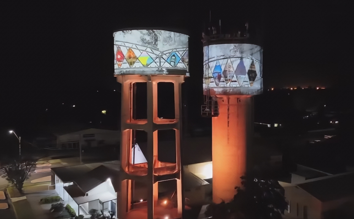 Illuminate the Flow is an innovative night-time video installation that projects animated artworks onto Goondiwindi historic water towers.