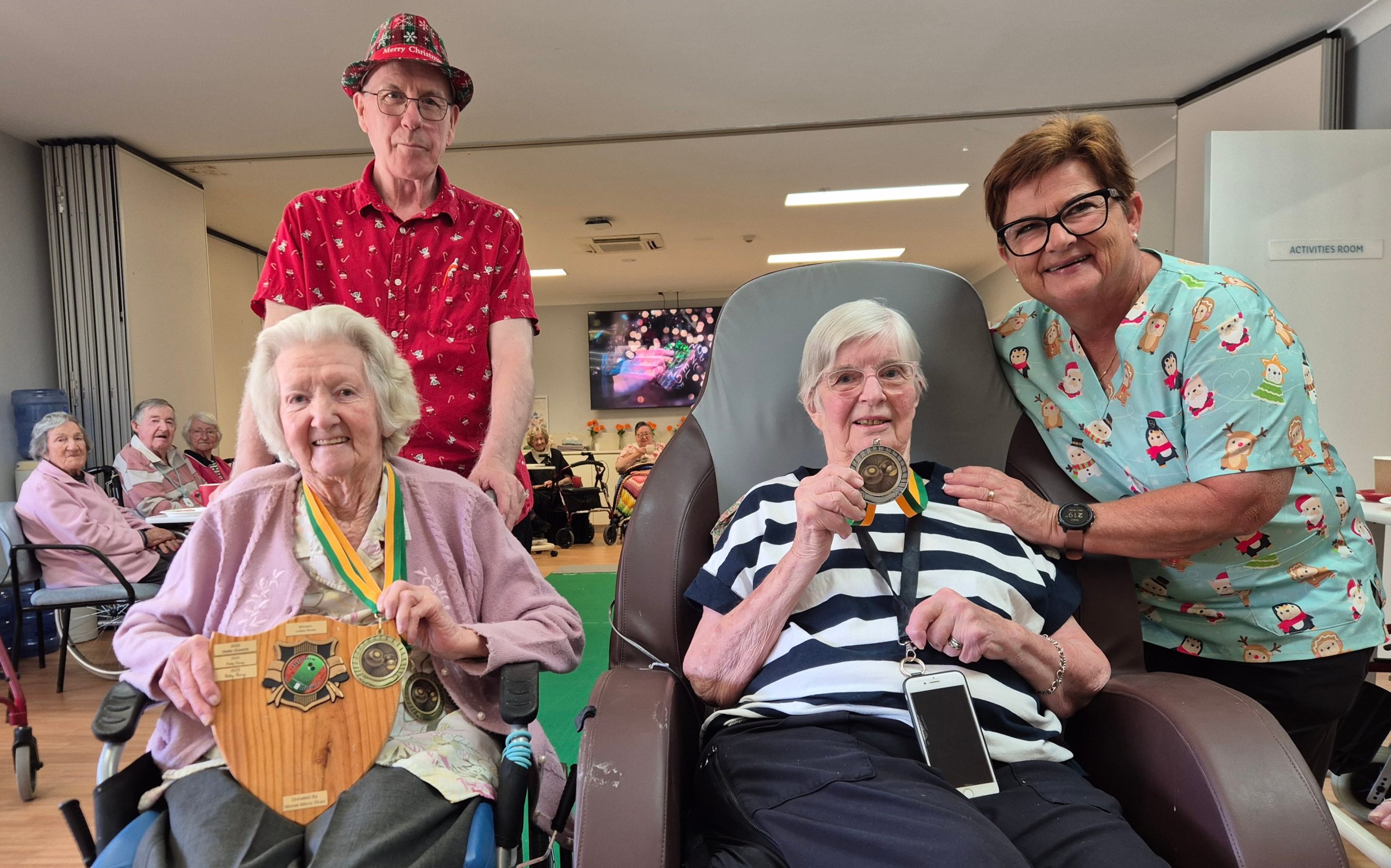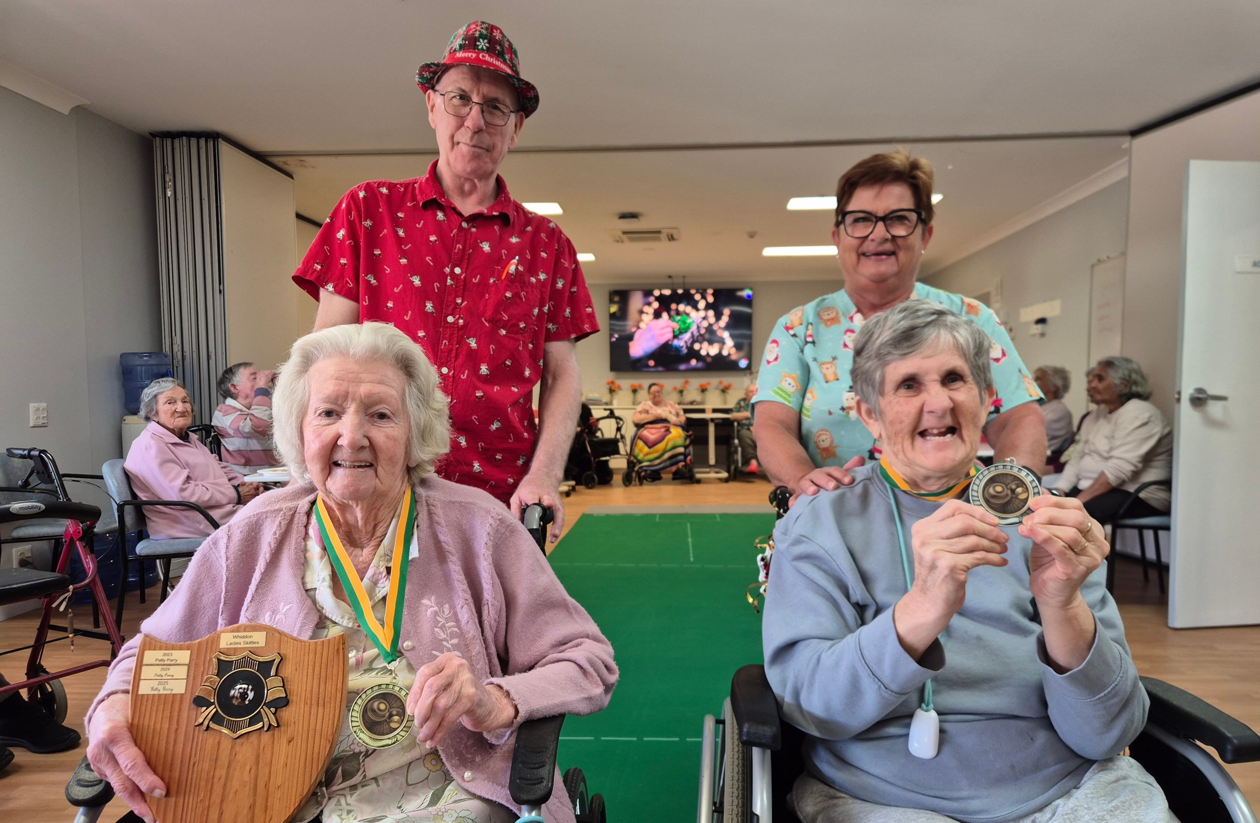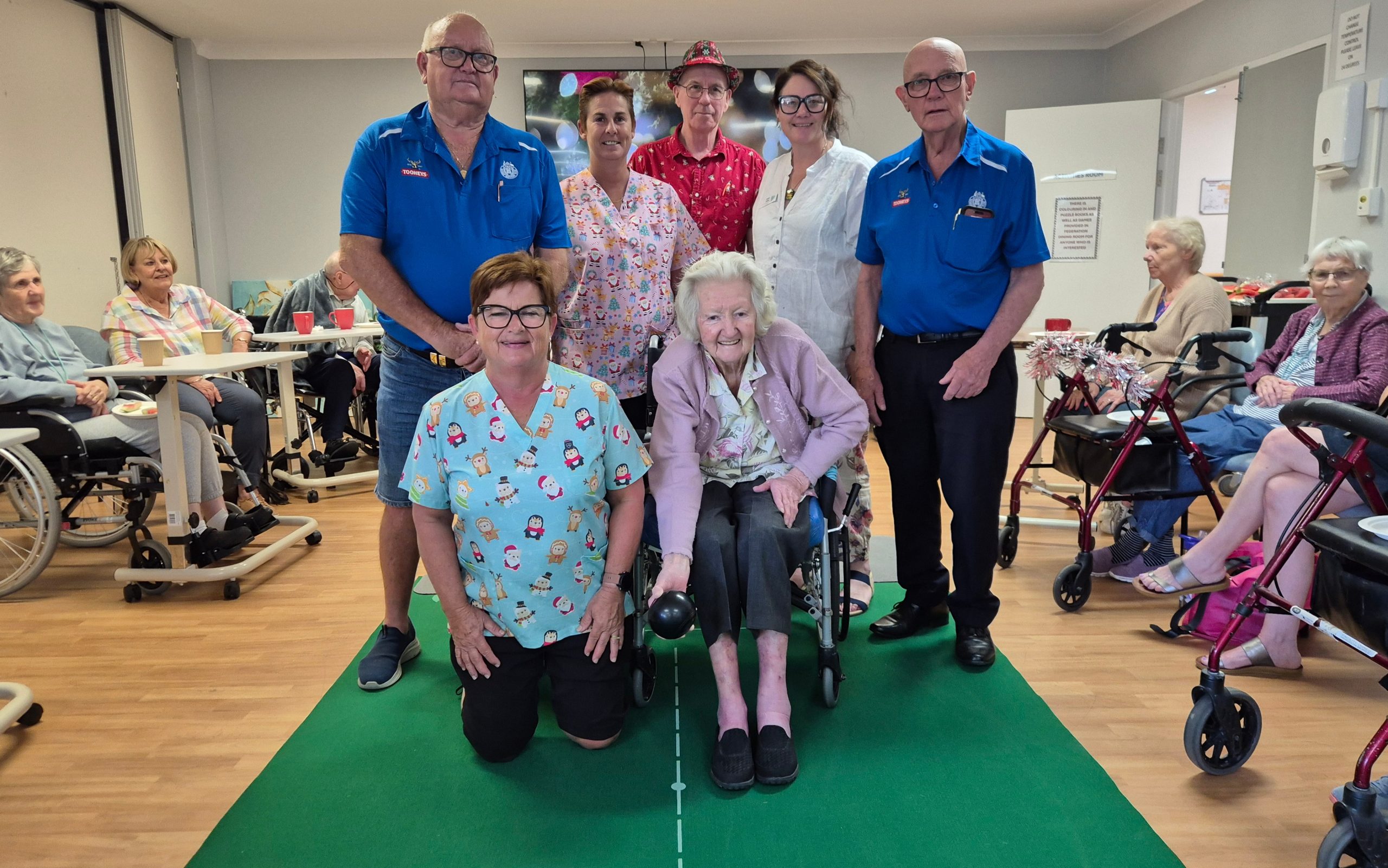 Whiddon residents compete in weekly carpet bowls and skittles tournaments, and this year they were surprised with a new indoor bowling mat from Moree Services Club to enjoy their Monday morning bowls sessions.