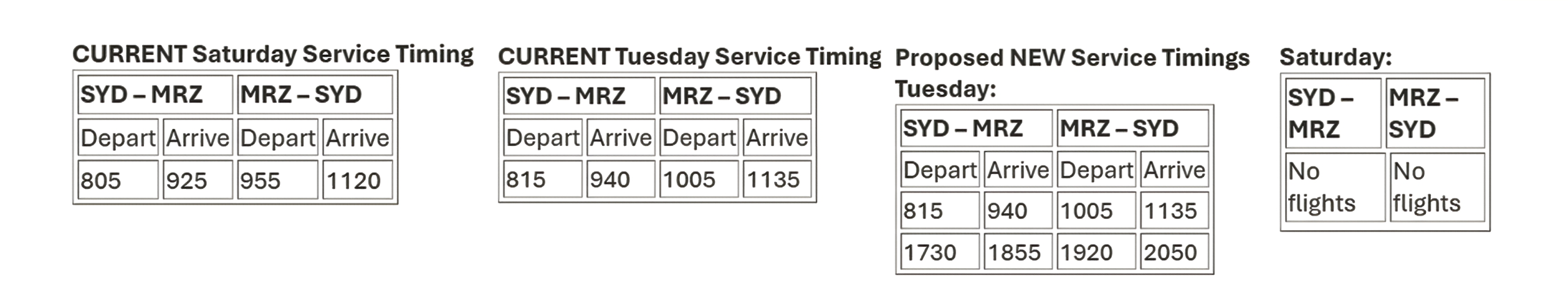 Council is now actively seeking feedback from the community on the proposed change to determine if two Tuesday flights would be better supported.