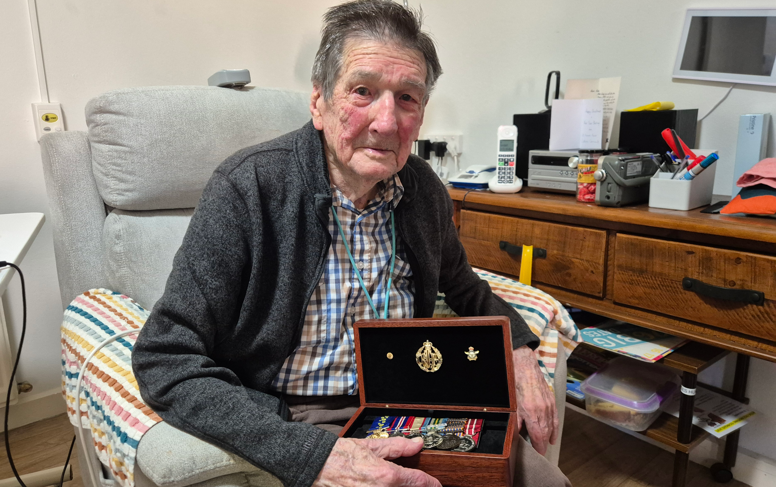 Mr Hurst, who turns 100 on July 13, was presented with a commemorative display box to house his medals and pins.