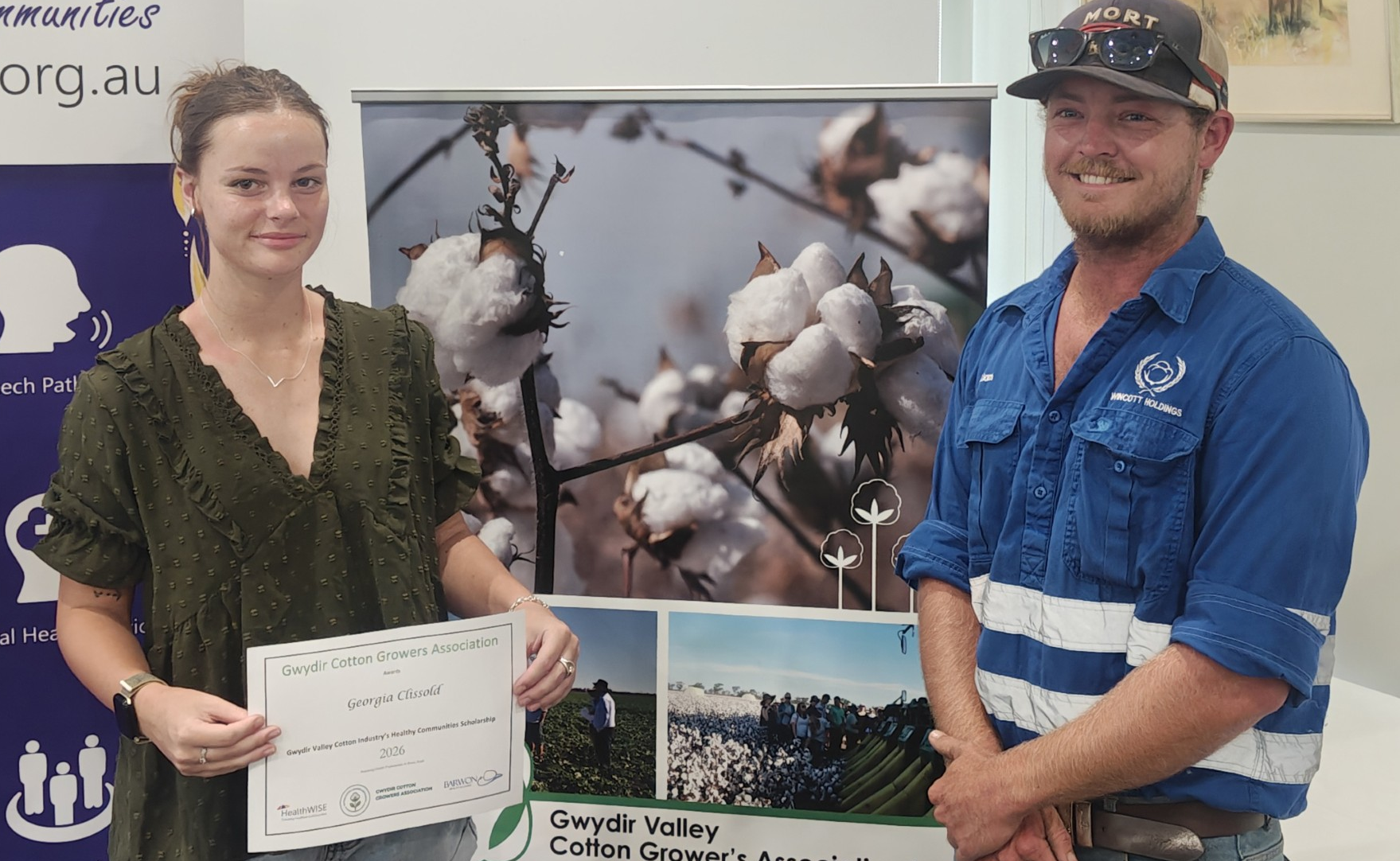 Healthy Communities scholarship winner Georgia Clissold with Gwydir Valley CGA committee member Liam Winter.