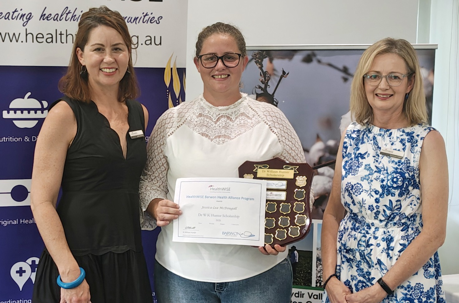 Marking 20 years of the Dr William Hunter scholarship and a decade of the Healthy Communities scholarship, HealthWISE and the Gwydir Valley Cotton Growers Association recognised Jessica-Lea and Georgia at the Moree Town and Country Club on Tuesday.