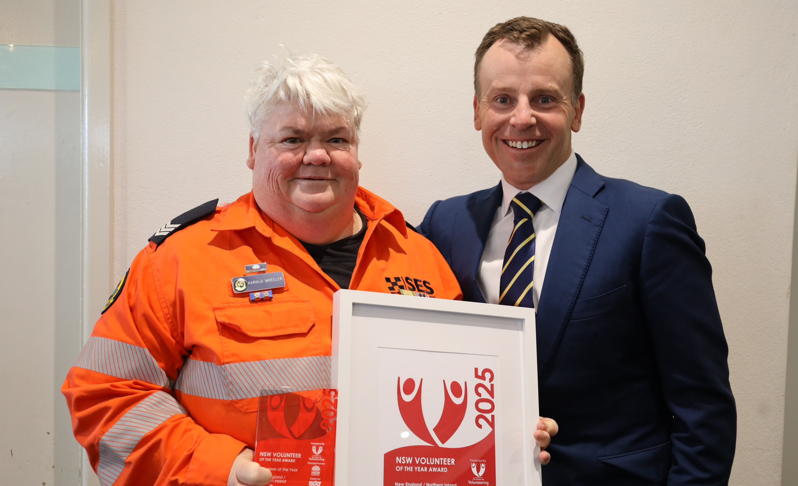 Member for Northern Tablelands Brendan Moylan and last year’s New England-Northern Inland Volunteer of the Year Kamala Wheeler who went on to win the statewide award.