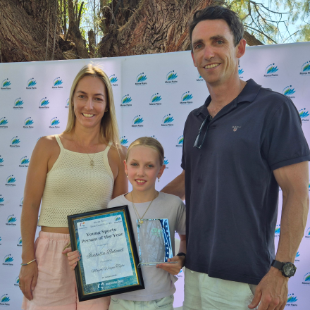 MOREE pocket dynamo Bella Boland was named Young Sports Person of the Year at the Australia Day awards ceremony held at Jellicoe Park on Monday. In 2025, nine-year-old Bella was successful across multiple sports, winning school, zone, regional and state cross-country titles. She also received a Blue Award for cross country at the 2025 North