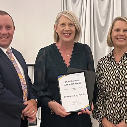 ST Joseph’s Mungindi Primary School principal Frances Reynolds has been presented the JA Sutherland Memorial Award at the recent New England Education Co-Operative Awards for her significant contribution to education. The annual awards, held last month at the Armidale Golf Club, recognises outstanding achievements in education within the New England and north-western area of New