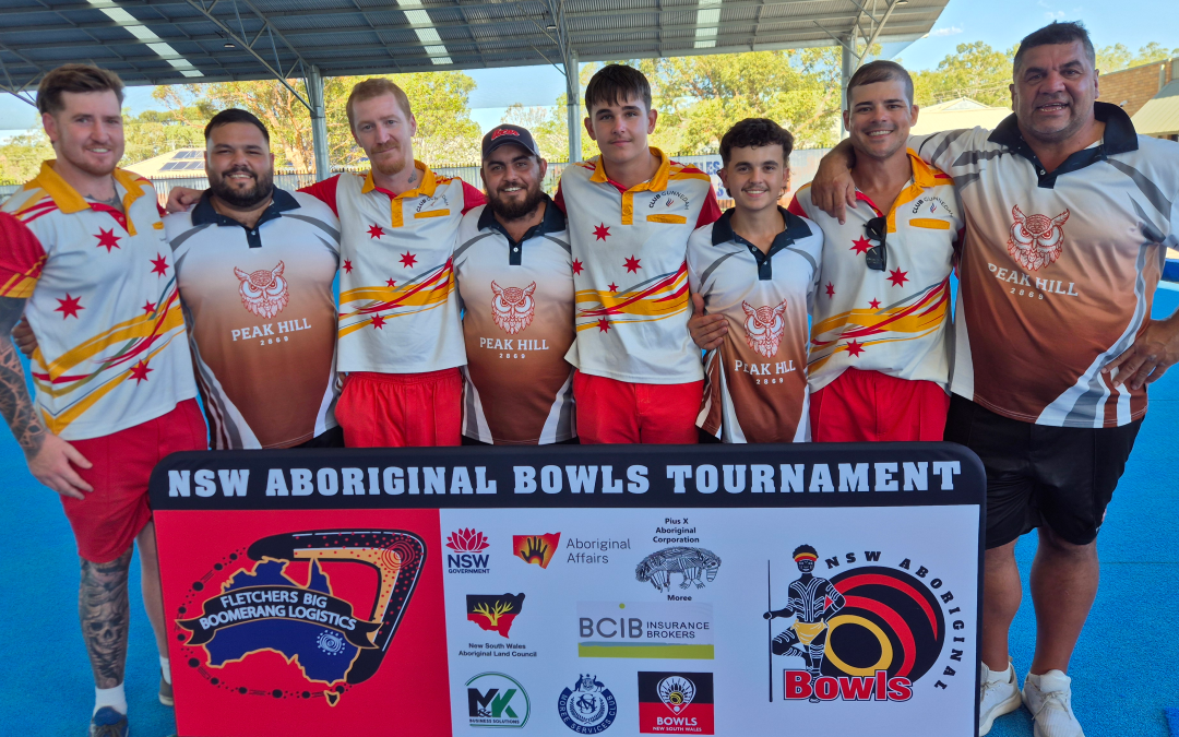 Boys from Peak Hill collar 2026 NSW Aboriginal Bowls Tournament at Moree